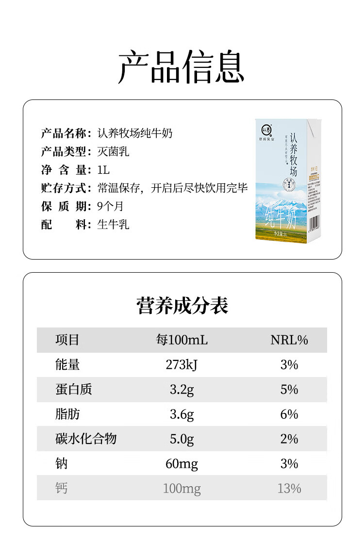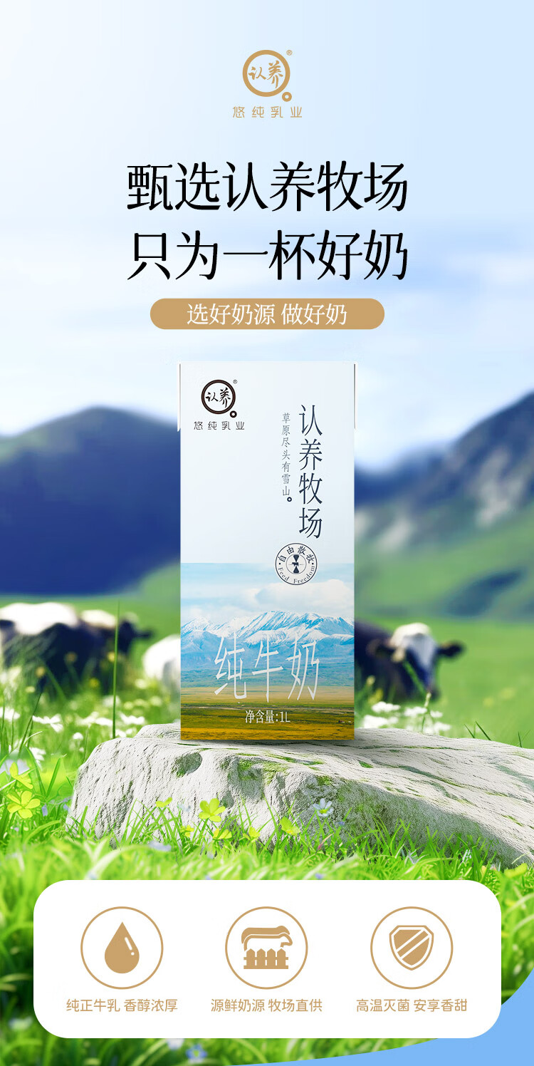 認(rèn)養(yǎng) 認(rèn)養(yǎng)牧場純牛奶1L裝家庭裝公斤裝 1L*6盒