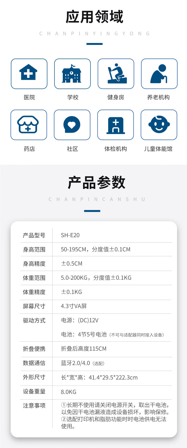 上禾(SHANGHE) 超聲波身高體重體檢秤測量儀語音播報折疊便攜,身高體重一體機 SH-E20脂肪打印款