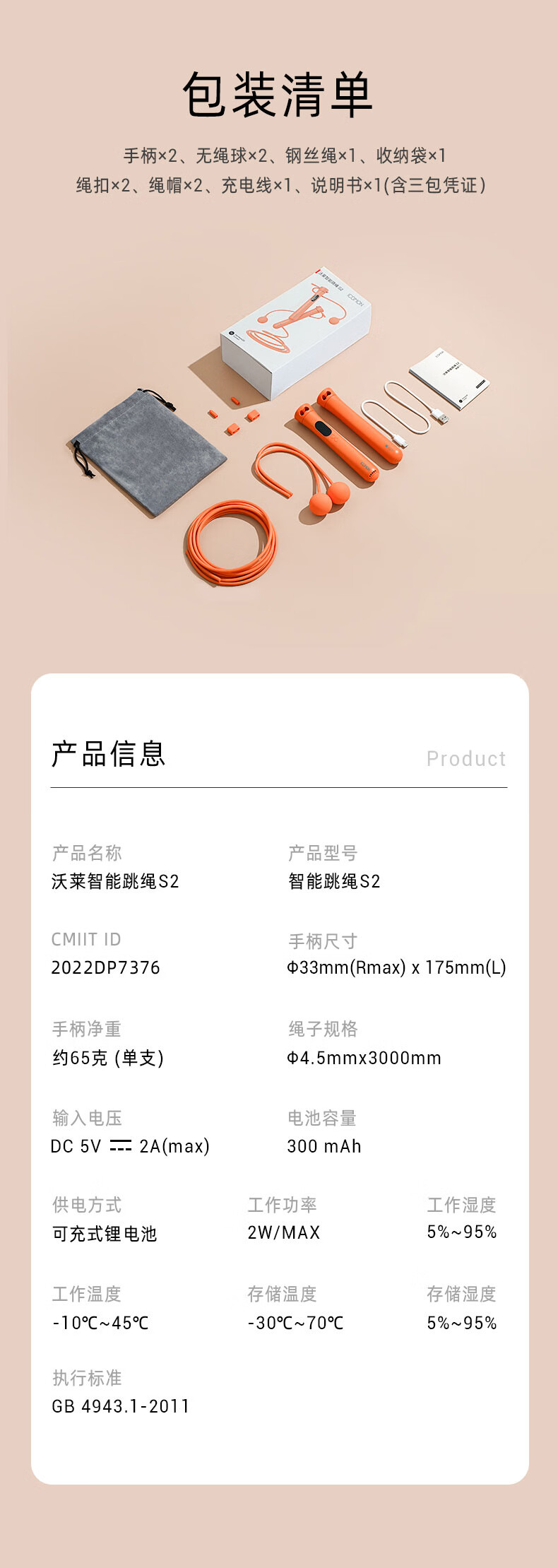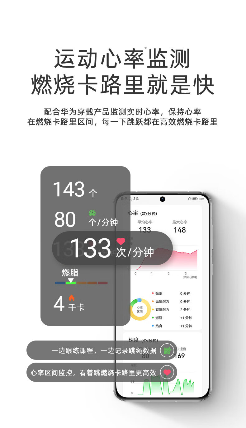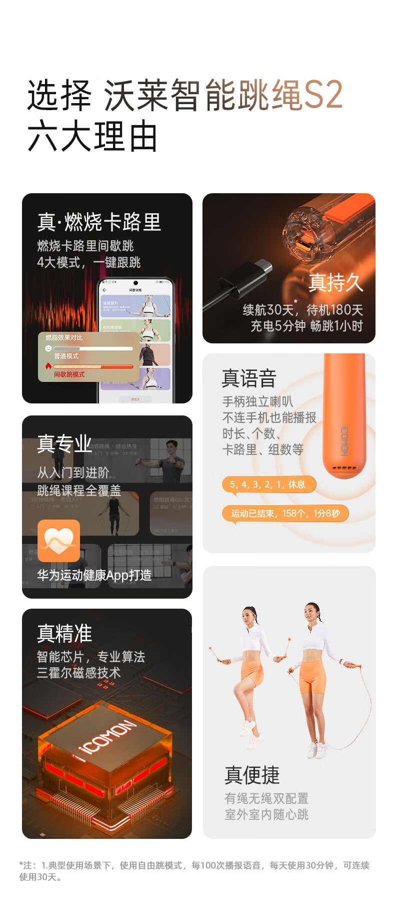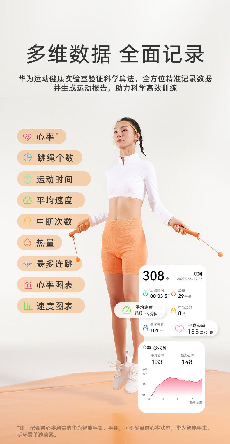 華為(HUAWEI) 智選沃萊智能計數(shù)跳繩S2無繩有繩成人有氧減肥運動學生競技跳繩