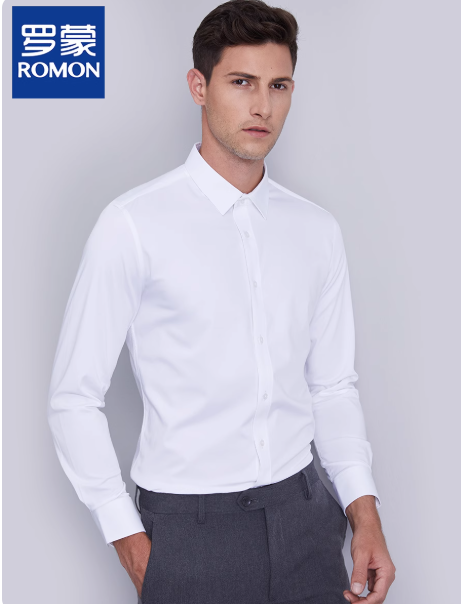 羅蒙(ROMON) 男士竹纖維白色長袖襯衫 43碼(建議160-175斤)