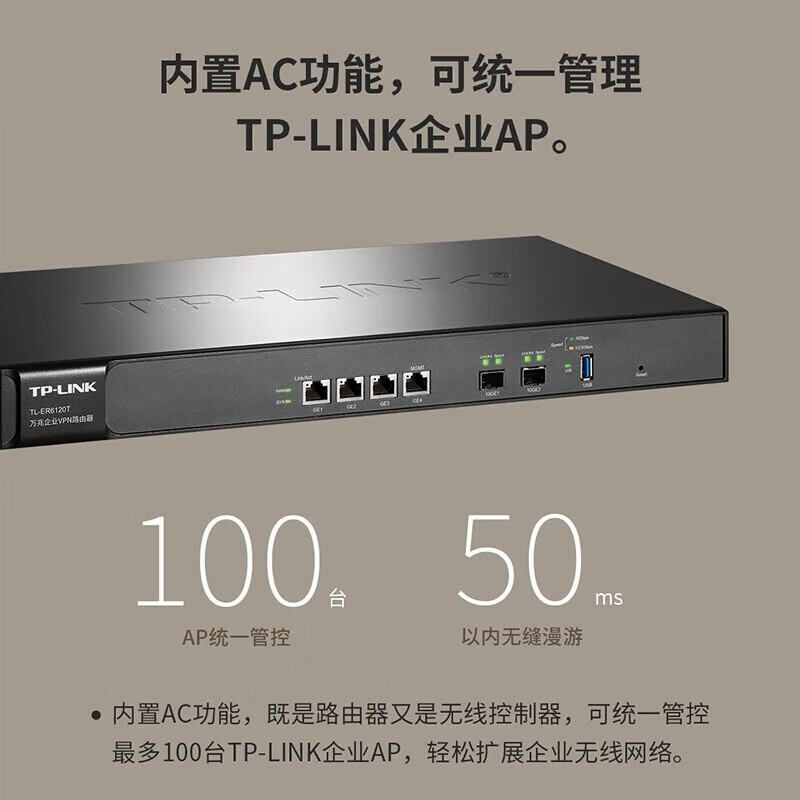 普聯(lián)(TP-LINK) 路由器 企業(yè)級 萬兆 AC管理 多WAN口 家用企業(yè) TL-ER6120T 2萬兆光 帶機(jī)量500臺
