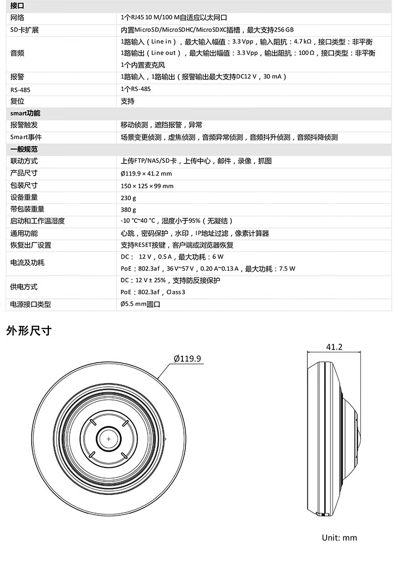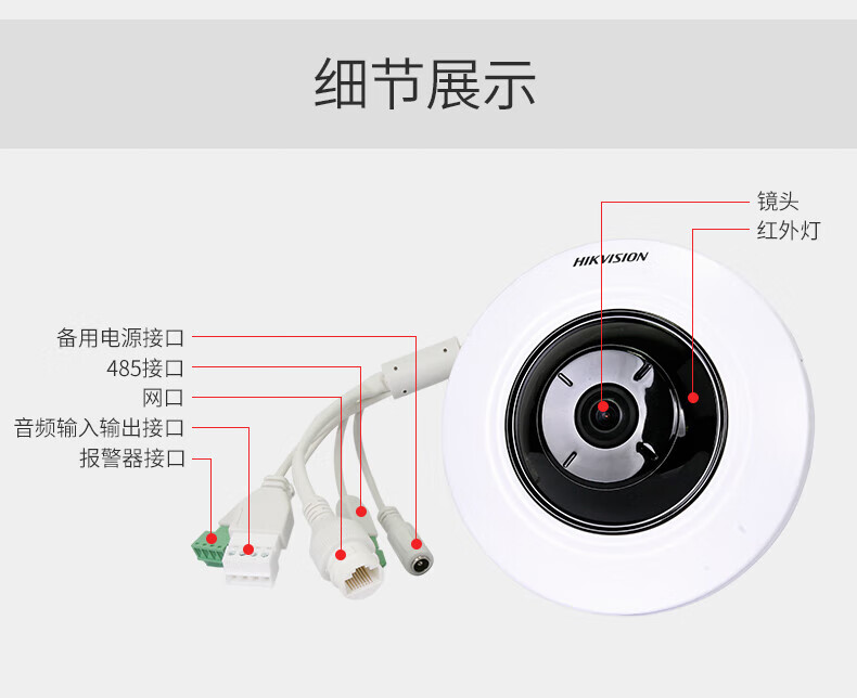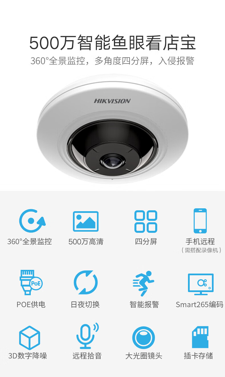 ??低暎℉IKVISION) 500萬超高清全景攝像頭360度超廣角室內(nèi)魚眼監(jiān)控攝像機POE網(wǎng)線供電DS-2XA3956F-IS
