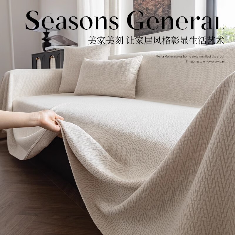 頂姿 輕奢高級(jí)感雪尼爾萬能沙發(fā)蓋布巾2025新款萬能全蓋沙發(fā)套罩防貓抓 素自-米白 180*230cm