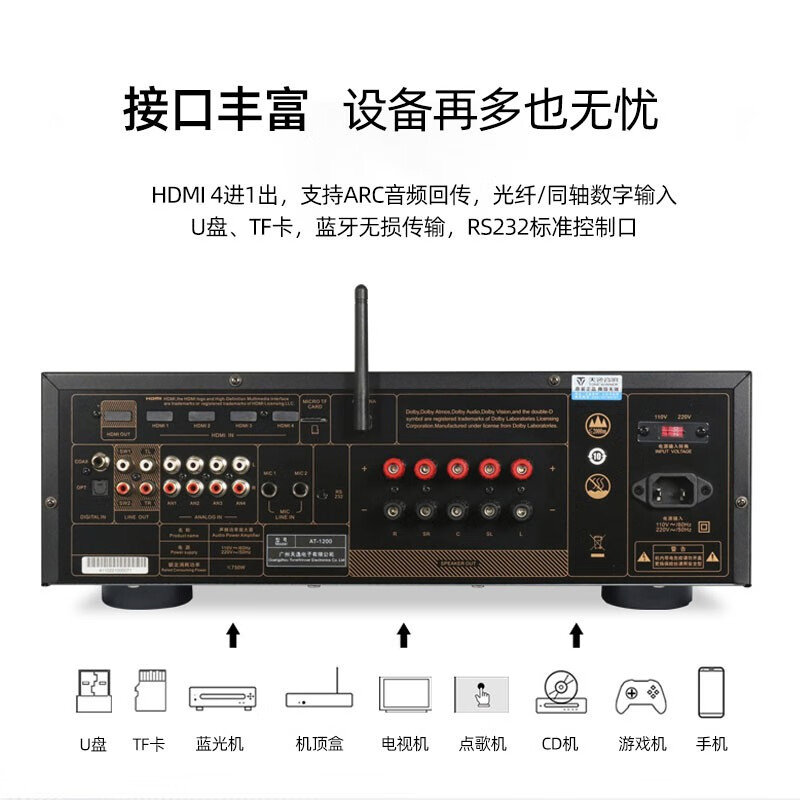 天逸(Winner) AT-1200 5.1.2全景聲家庭影院AV功放家用KTV大功率合并式功放機 AT-1200
