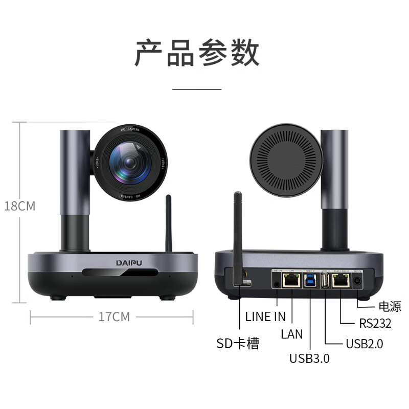 戴浦(DAIPU) 4K視頻會(huì)議套裝全套設(shè)備10倍變焦會(huì)議解決方案攝像頭攝像機(jī)無線有線藍(lán)牙拾音器全向會(huì)議麥克風(fēng)T55 35-65㎡無線4K10倍光學(xué)+麥一拖二
