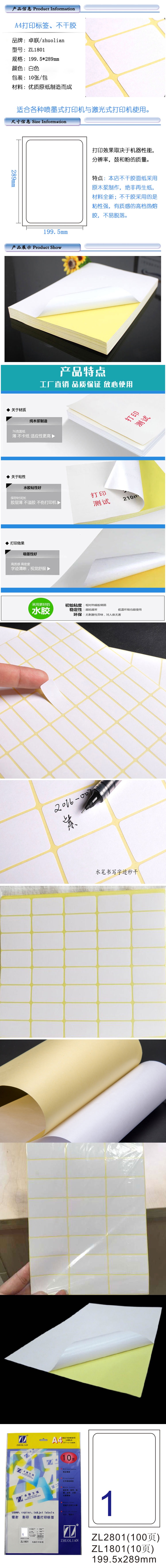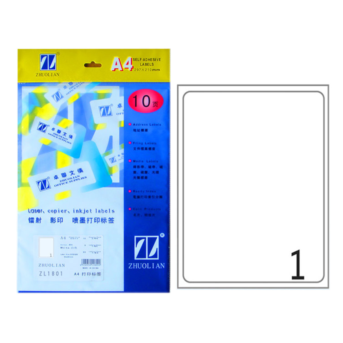卓聯(lián) ZL1801 電腦打印標簽A4不干膠打印紙(10頁/包)