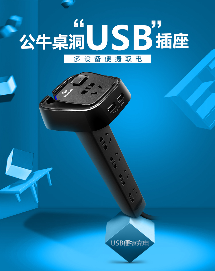 公牛(BULL) 桌洞插座 GN-U2050 1.8m